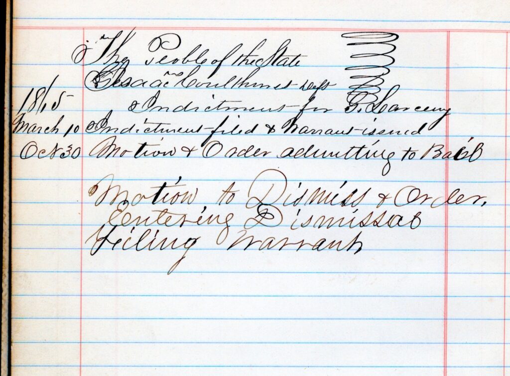 This goes under of not quite Dumpster Dive Tales While searching through archives I spotted this file. it is Lassen County District Docket of 1865. In 1869, it surfaced at a Reno, Nevada yard sale The person who bought it, knew Eslie Cann, who at the time worked at the Nevada Historical Society. Eslie alerted me, and she passed on small docket me for safe keeping. It should be noted that the voters of California in 1879, adopted a new state constitution. The District Court system was replaced with the Superior Court system we have today. Anyhow, the moral story is one never knows how records were dispersed and when they may appear again.