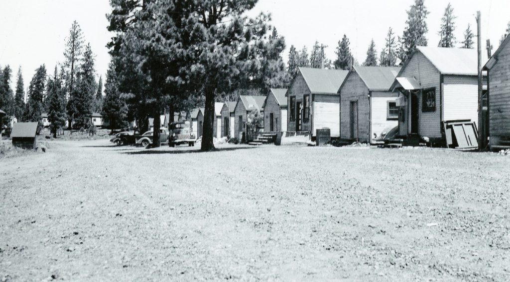 What was referred to as “family row” at Camp 10 consisted of about ten cabins. As Leonard Uhl who, with his wife Irene and son Richard, lived there in 1943 recalled: “The family cabins were quite a bit larger than the single men’s cabins, and had two rooms. They were equipped with a wood cook stove, a kitchen table, chairs, double bed and a screen and gunny sack evaporation cooler.” The cooler served as a primitive refrigerator. The families cooked their own meals. Except for rare occasions, only employees were allowed to eat in the cookhouse. Employees with families had the choice of eating at home or at the cookhouse.