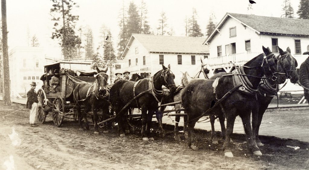 A year after the above photograph was taken, the horse drawn stagecoach was replaced with the “auto-stage” a large touring car. In 1916, the voters of California passed a $16 million bond measure to begin the construction of a state highway system.