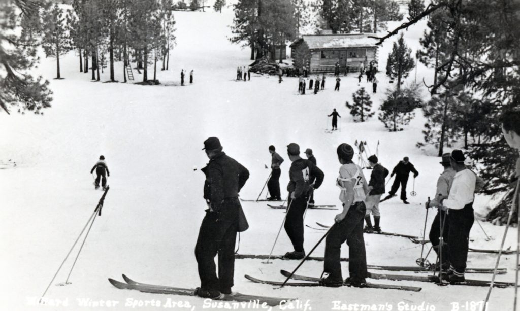 This Lassen College ski club was organized in the fall of 1939. In the 1930s, skiing was all the rage in the region. In 1934, Westwood’s Paul Bunyan Ski Club constructed a ski jump on Fredonyer. In 1938, Lassen College forestry students built a ski hill and warming hut at Willards some six miles west of Susanville. Of course, this ski club took advantage of many skiing events held at Mineral and Lassen Park. The club had a very short existence and went dormant by 1942, one of the many affects caused by World War II.