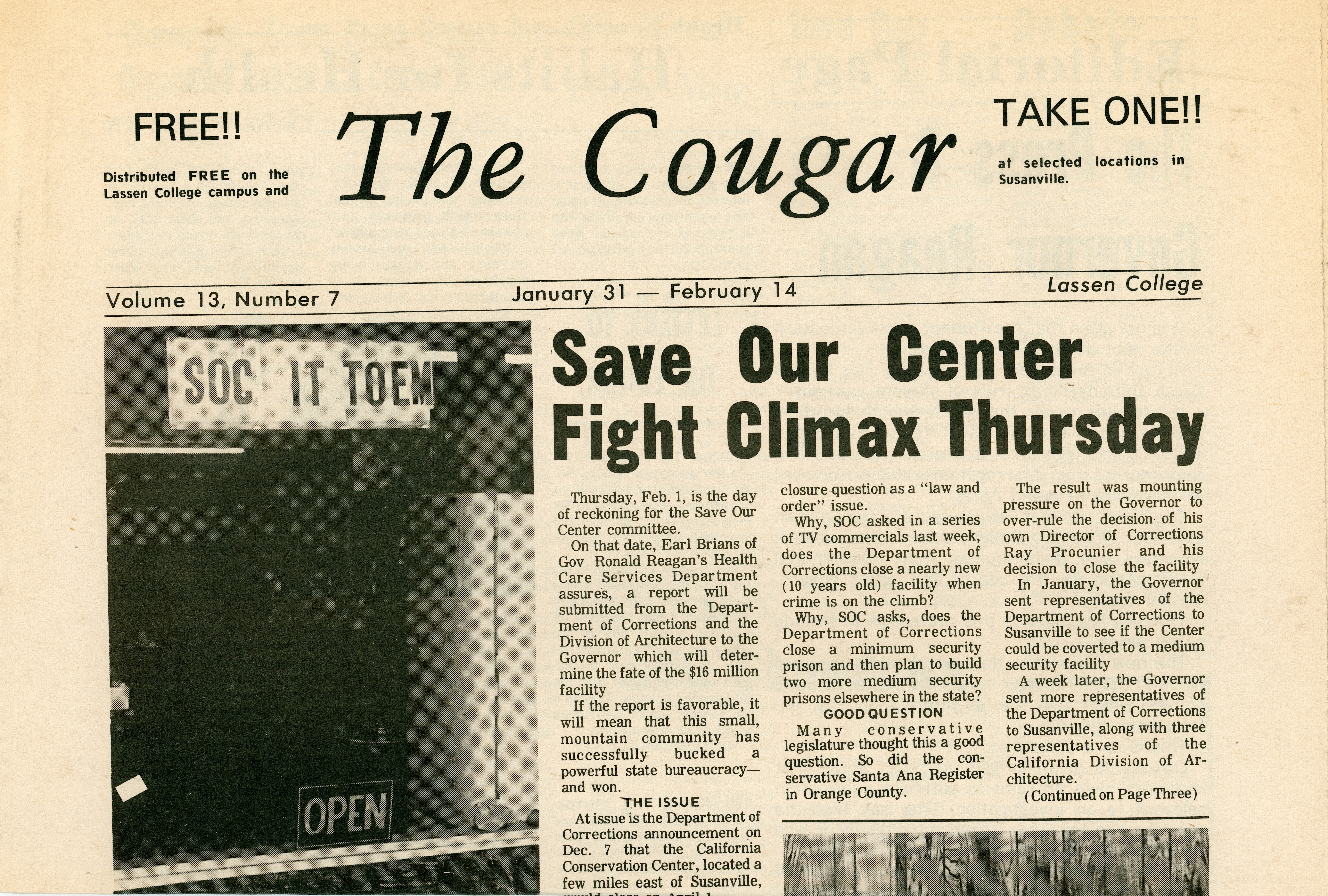 Less than 10 years after it opened, it was disclosed that the State of California had plans to shut down the California Conservation Center at Susanville. Of course, the community fought to keep it and on December 13, 1972 the Save Our Center campaign was launched. State Director of Corrections Ray Procunier stated that the California Conservation Center near Susanville was to be closed effective April 1, 1973. Procunier cited a decline of the inmate population by 4,000. In doing so it would eliminate 270 jobs. Procunier stated, “The cutting off of that payroll is to have an impact of the economy of that community, but Susanville is not the best location in the world for a correctional institution because of its remoteness.”