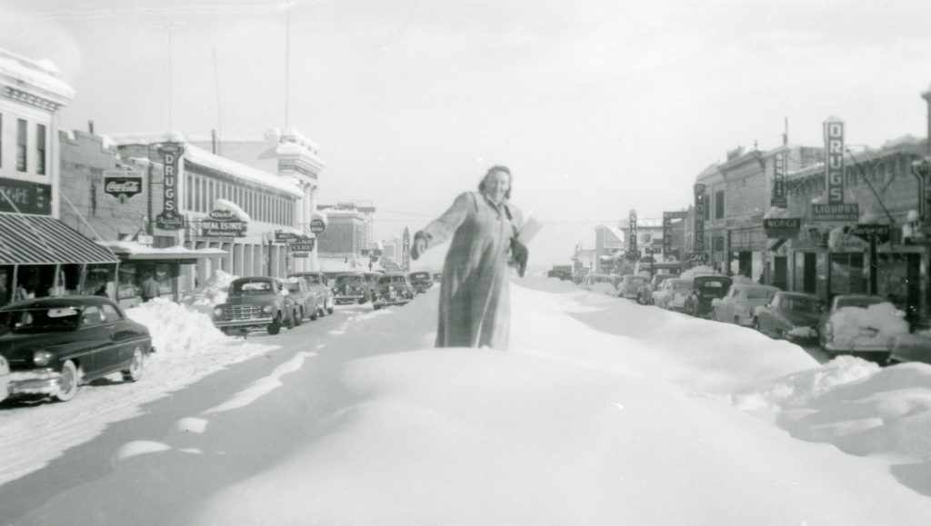 Main Street, Susanville, 1952.The way this winter has been shaping up so far, it is starting to look doubtful that we are going to see the standard snow berm down Main Street. If you are waxing for nostalgia, I provide you with today’s featured photograph taken after the “Big Snow of 1952.” When the City of Susanville was incorporated in 1900 snow removal of the streets was not even given a second thought. It was not until the 1920s, that it became an issue, due to the fact the automobile was replacing the horse as the preferred mode of transportation. In 1933, the City transferred Main Street to the California Highway Department, as a means to alleviate the burden of maintenance because of the financial woes from the depression. In 1935, the city’s finances were so strained that they informed the residents there would be no snow removal that winter as they did not have the funds.
