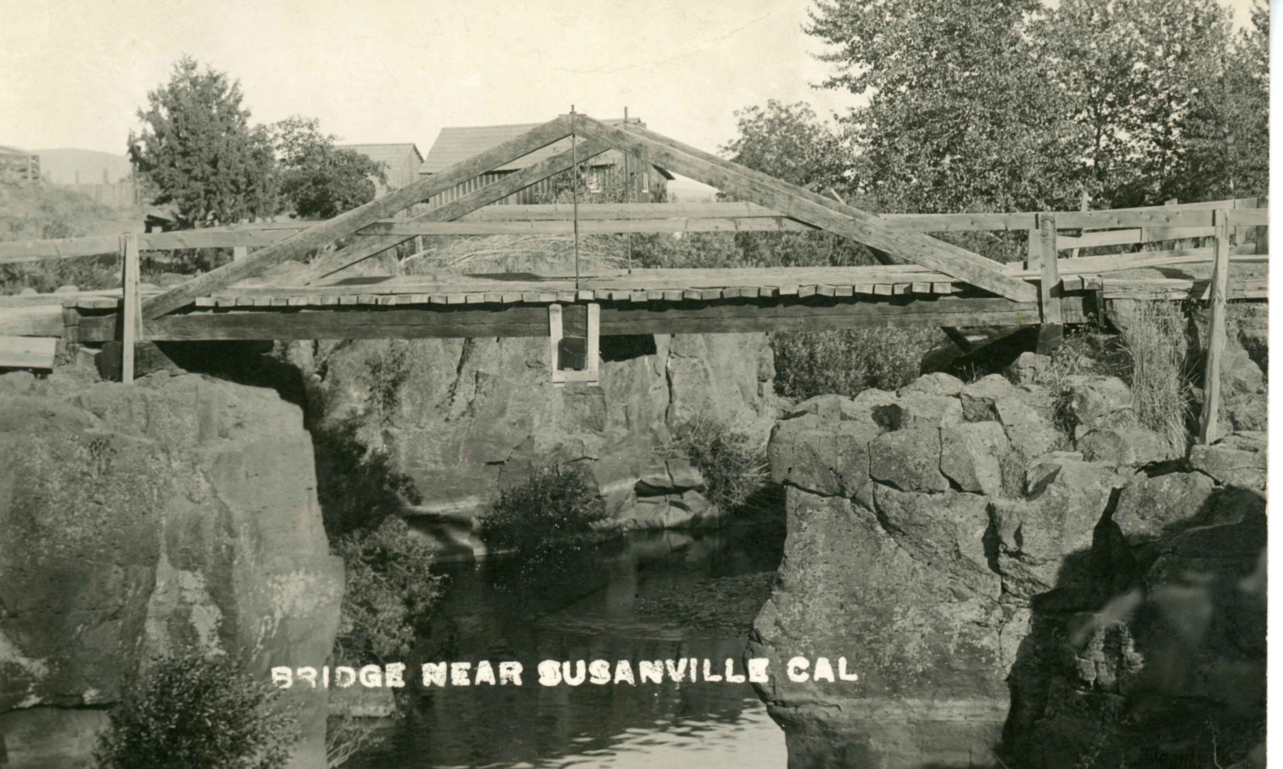 Yesterday, we examined the route out of Susanville’s western boundary. For some odd reason, I must have transportation issues on my mind. To leave town to the south, required crossing the Susan River. Just like how Pine Street at one point became Prattville Road, the same name change occurs wherein South Weatherlow Street ends on the north side of Susan River and after one crosses the bridge, the route becomes Richmond Road. The wooden bridge crossing the river was a contentious issue between Lassen County and the City of Susanville once the railroad was constructed. Back then, the river served as the southern boundary of Susanville. The wooden bridge could not support the heavy freight arriving at depot on Richmond Road. It took some time for the two entities to agree to split the costs for a new bridge.