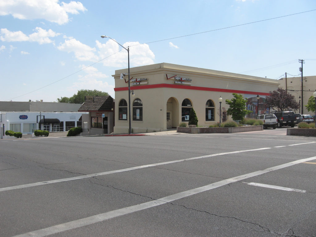 The photographer of the above photograph had the luxury to be able to stand in Main Street, while I played it safe and took the current view from the sidewalk. Only one building still remains. In the original photograph it was the Bank of Lassen County, and now the building is the office for Verizon.
