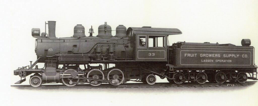 In 1921, Fruit Growers bought a new Baldwin locomotive, that was designated the No. 33. Some where the down line they changed it the No. 2. In 1952 Fruit Growers discontinued railroad logging on the Lassen (Susanville) Operation. In 1955, Fruit Growers announced the closure of Westwood Operation. In 1956, Fruit Growers sold the entire Westwood Operation to a liquidation company Wershow & Weisz. Some Fruit Growers locomotives were included and auctioned off in the fall of 1956. If No. 33 was included, that information would be in my Fruit Growers Westwood file that is in storage.