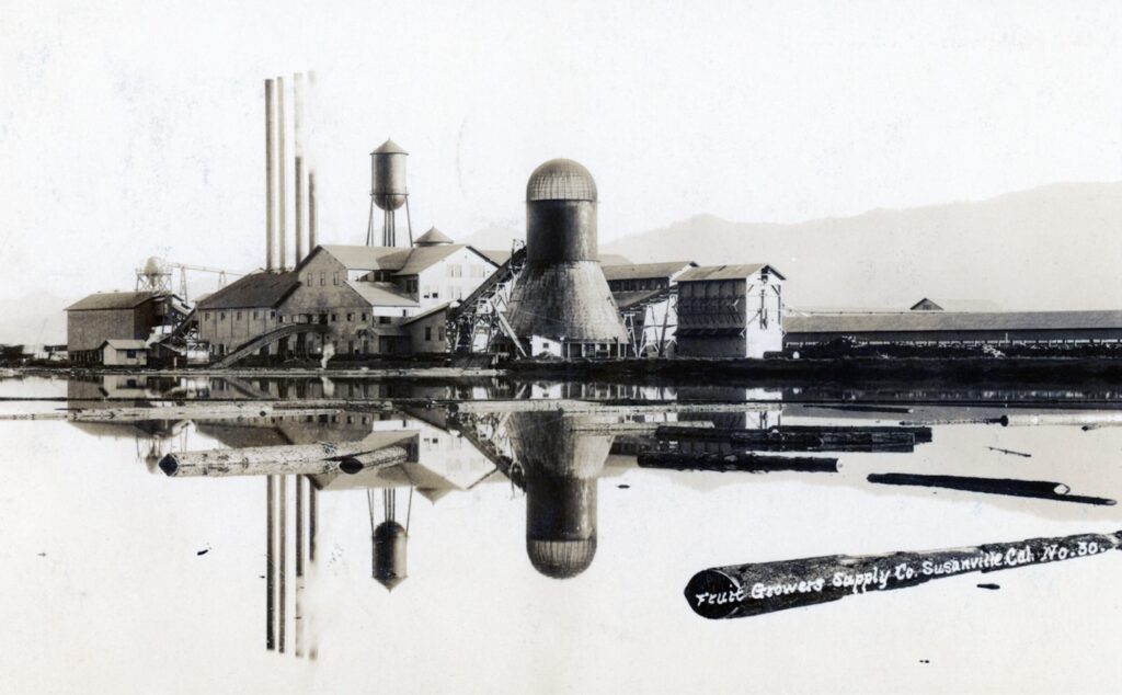 Awhile back we explored the closure of the Lassen Lumber Box & Company mill. It was acquired by its neighbor, Fruit Growers. That company purchased Lassen Lumber for its water rights, in case Fruit Growers wanted to convert its mill to a cardboard plant. While that event had never happened, Fruit Growers did operate a cardboard plant in Southern California.