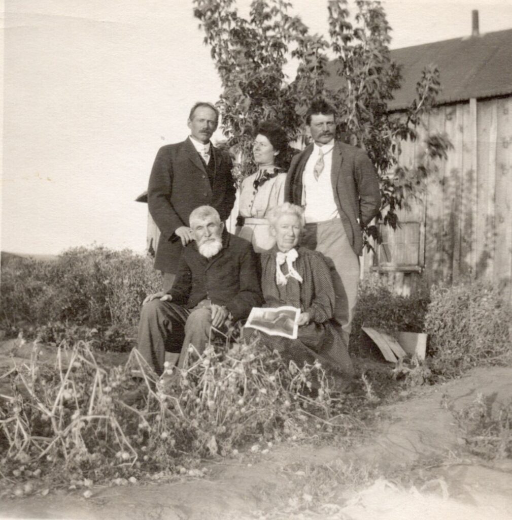 Caudle Famiily. Seated Alfred and Mary Caudle. Standing Carl, Mamie and Marvin Caudle Taken at Mamie Caudle’s homestead, June 1912.
