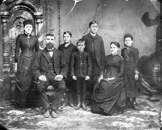 Andrew Litch Family. Left to Right: Clara, Andrew, Thomas, George, Fred, Mary (Grass) and Minnie–Courtesy of Erma Gibson Haley