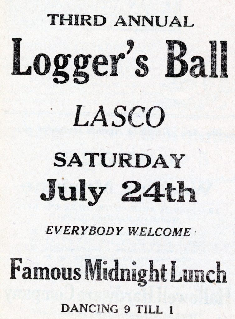 Lasco was the logging camp of the Lassen Lumber & Box Company during the 1920s. It was located at the northern base of Peg Leg Mountain. During the summer it was home to 250 loggers. They were a social bunch with special events on Saturday nights throughout the summer. One of their annual events was a Logger’s Ball held there on the last Saturday of July. Lasco’s de facto Mayor, Emille Frizzie always made it a point to welcome all visitors. One time he made a public invite to everyone from Chester to Doyle, though he made it clear bootleggers were not welcomed. As was customary then, a midnight meal was served and dancing continued into the wee hours of the morning.
