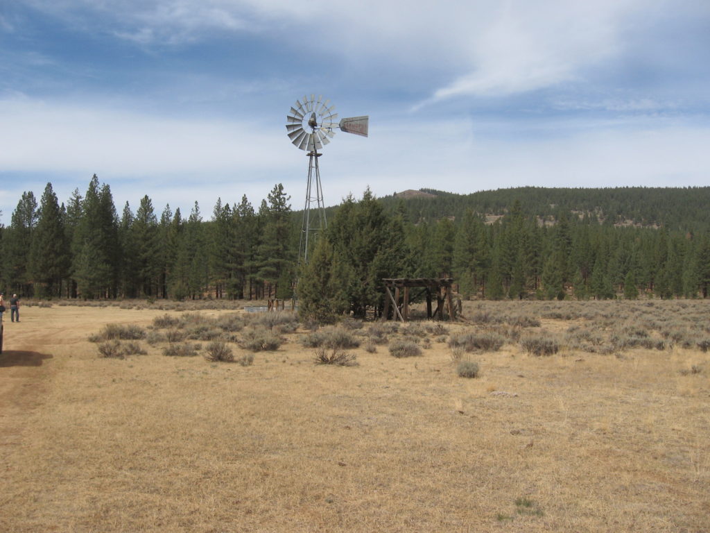 Dow Flat and Wells is located a short distance north of Spalding Tract. In the distance is Dow Butte. In 1994, the Dow Butte Lookout was removed and relocated next to the Eagle Lake Marina.