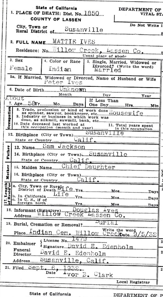 “A long time ago the lizard was a little man, very little man indeed, and he was very much afraid of the grizzly bear, who was the ‘hi[yu’ boss-the right bower-the four aces so to speak, of all beasts, and what is more could talk. Well, these ugly bears seemed to hanker after these little lizard men and would think nothing of making a lunch of whole family, with mother-in-laws thrown in as dessert. The lizard were mortally afraid of them, but would shoot arrows at them without doing any harm, only making the grizzlies laugh. (These arrowheads are the ones we find.) At last there was a smart little cuss of a lizard who had had all his relatives eaten except his grandmother, with whom he lived, and resolved to make at a bow and arrow that would kill the bear. So he set himself to work and when questioned he told them all what he was doing at which they would laugh. When he got his bow completed his grandmother would not let him leave the campooda, for fear he would meet the fate of the others. At one last evening, while the old lady was gone after a basket of water, he took his new bow and quiver of arrows and stole away to a valley where the bears congregated to hold their meetings and all over the prospects of yellow jackets crop. Arriving at the valley, he soon saw a number of bears, among was the old boss himself-a monster that had grown fat on lizard men. Climbing a small sapling, he made a noise by shouting, whistling and other means, to attract the attention of the bears, which soon did, and the old boss bear walked growling up to the tree, and savagely inquired what Mr. Lizard wanted. The little fellow up and told him what he had made, and that he was going to kill him, at which the bear laughed and told the little fellow to come down and he would go home with him and they would have would have big spree that night. But lizard declined the bear’s invitation to his own home and told him he meant business, and if the old grizzly did not believe him, to just shut his eyes and open his mouth and he would show how it was done. To this the bear laughingly consented, when the little fellow fired away, the arrow entering the bear’s mouth, killing him on the spot. He then hastened to his grandmother, whom he found weeping, thinking that he, too, had been a made a lizard angel, just like the rest of his relatives. He told the old woman to ‘dry up’ and then told her what he had done, and it took him some time make her and the other lizards believe him, although he had never been known to tell a lie. At the last the truth became known, he was made a big chief, a great feast of crickets, acorns and suckers was given, and he lived long to enjoy the honors he had achieved by his daring act, while the bears, having found their match, became frightened and sought the darkest shades of the forest, where they have ever since remained, only when forced by hunger to seek food in the valleys.”