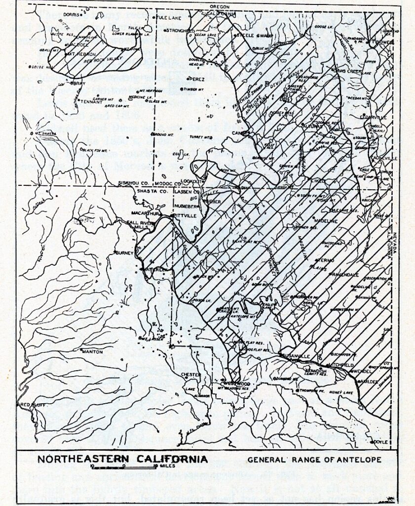 Prior to the 1849 California Gold Rush the pronghorn antelope could be spotted throughout most of California, especially in the Sacramento and San Joaquin Valleys. Fencing and agricultural development in those regions forced them of that habitat. By 1920, some thought the antelope were on the verge of extinction with a population of 13,000 in North America. One of the largest concentrations of antelope were located in Lassen and Modoc Counties. .