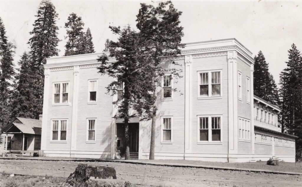 Company town’s such as Red River Lumber Company’s Westwood, in a rural setting had its challenges. To prevent labor turnovers, recreational outlets needed to be provided. However, this one amenity was not a cure all. In the 1920s, with affordable automobiles and improved highways laborers had an upper-hand in mobility. One of Red River’s earliest endeavors in its newly constructed town of Westwood, was aptly the named the Westwood Club. This institution included a restaurant, lunch counter, soda fountain, cigar and newsstand, a barbershop, reading room and a billiard room. While many enjoyed the Club, it did prevent Red River’s high turnover rate with employees, or with management. If there was a bright aspect, that due to high volume of high traffic in and out of Westwood assisted in the construction of Highway 36 between Red Bluff and Susanville. It would also be catalyst to establish Highway 32 to Chico. The Westwood Club was destroyed by fire on March 31, 1944, the cause was never determined.