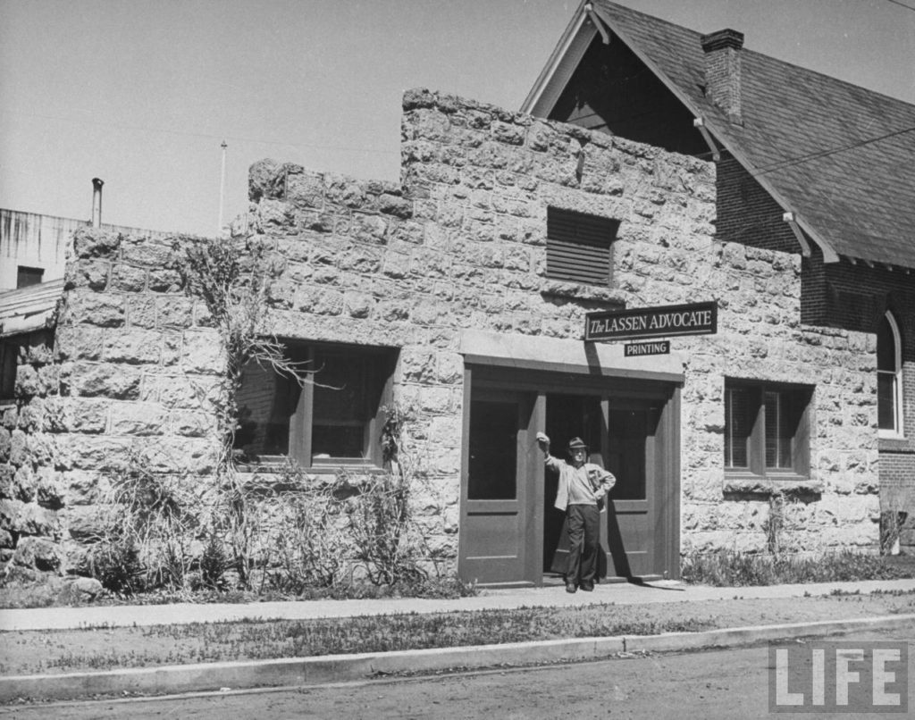 Emerson’s loss was only partially insured and was never ever to rebuild the hotel. He did construct a smaller native stone building fronting Main Street, that many people recall the home of Millar Hardware. Across the alley, and next to the Methodist Church a native stone building was built as Emerson’s warehouse. In March 1934, the Emerson Estate sold the warehouse building to the Lassen Advocate newspaper. In January 1963, the Lassen Advocate relocated to 2119 Main Street.