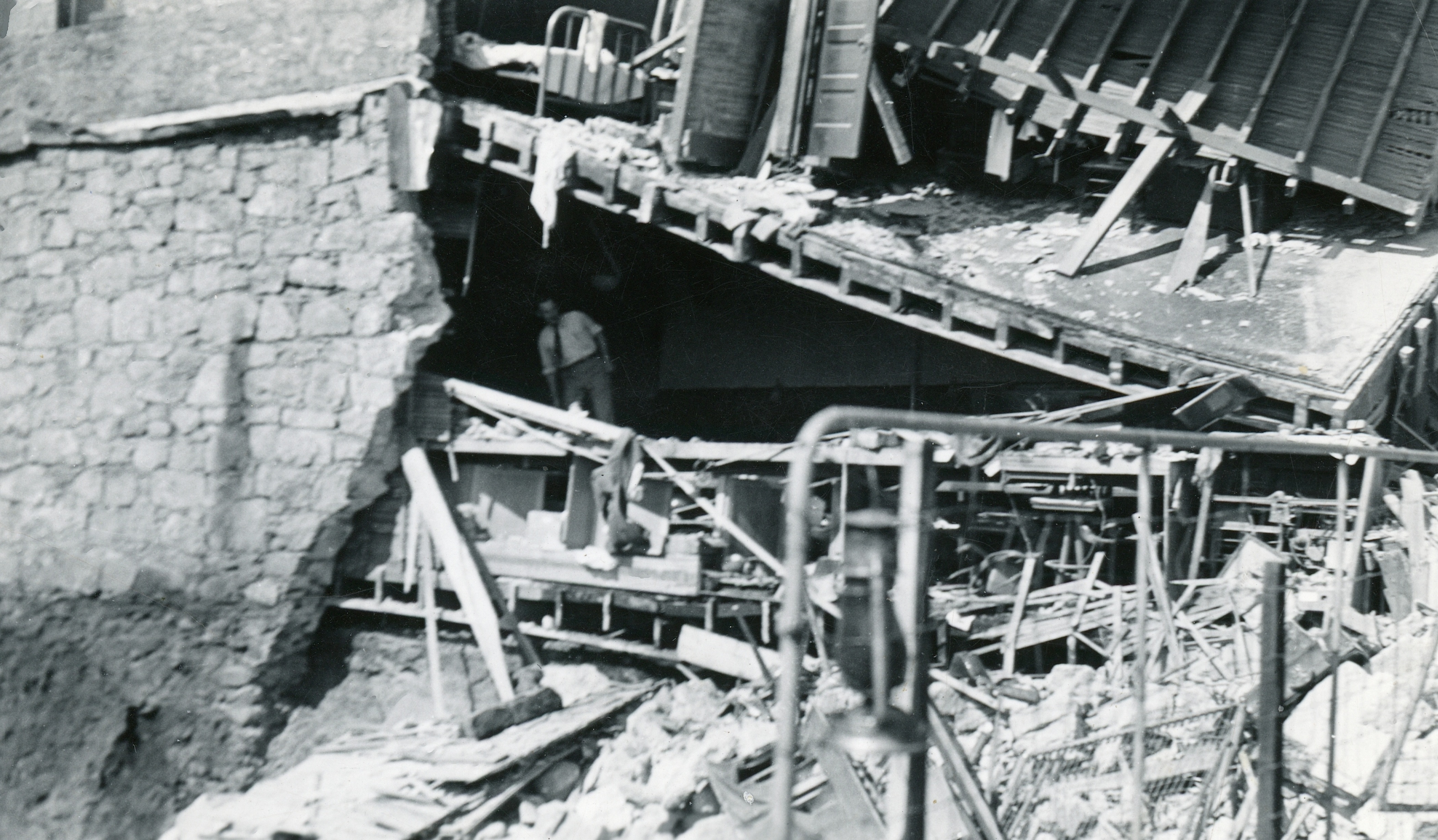The partially collapsed Grand Cafe. Courtesy of Helen Sargent