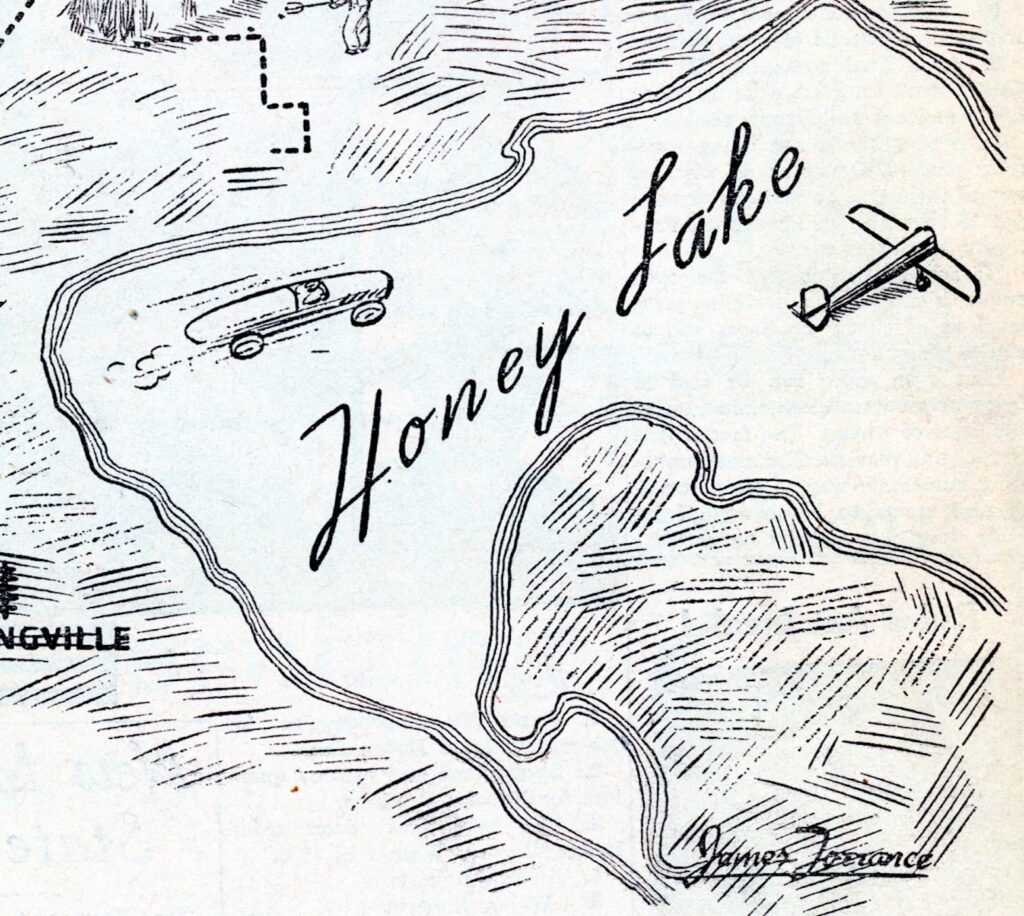 This caught my eye of a 1935 illustration with an automobile and an airplane on Honey Lake. I have many tales, when the lake is dry, that certain car enthusiast had roamed on the dry lake bed. Like a mirage, it is not really that dry. There places that appears to dry on the surface. there are soft spots, and many a poor soul has encountered them, got really stuck and stranded on the supposedly dry lake bed.