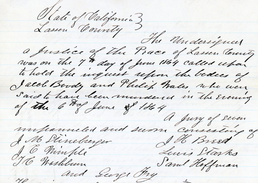 *There had been other murders prior to this, but this was the first one that fell over jurisdiction of the newly created Lassen County.