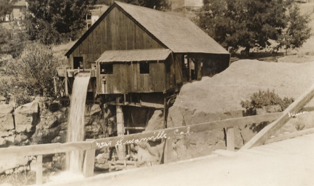 When it was destroyed by fire in 1915, due to its picturesque setting at the time it was believed the most photographed landmark of the Susanville vicinity. Recently, I located the above photograph. It caught my attention because of the angle it was taken. One can see the sawdust piles on the right side of the mill.