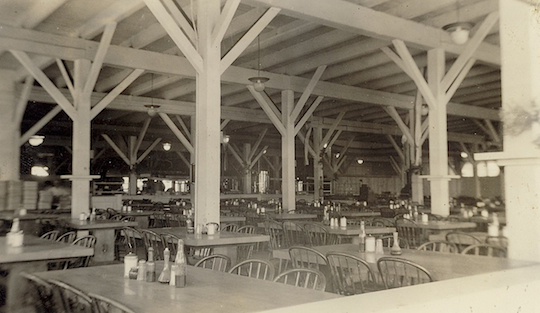 The town is located in the midst of the timber area on a level plateau. It is laid out in wide streets lined with pretty homes with here and there a tall pine as a symbol of the industry which supports the town. The big company department store is the largest in Northern California and there is a cafeteria that feeds over a thousand men an hour, and a great club house where the men can spend their leisure hours.